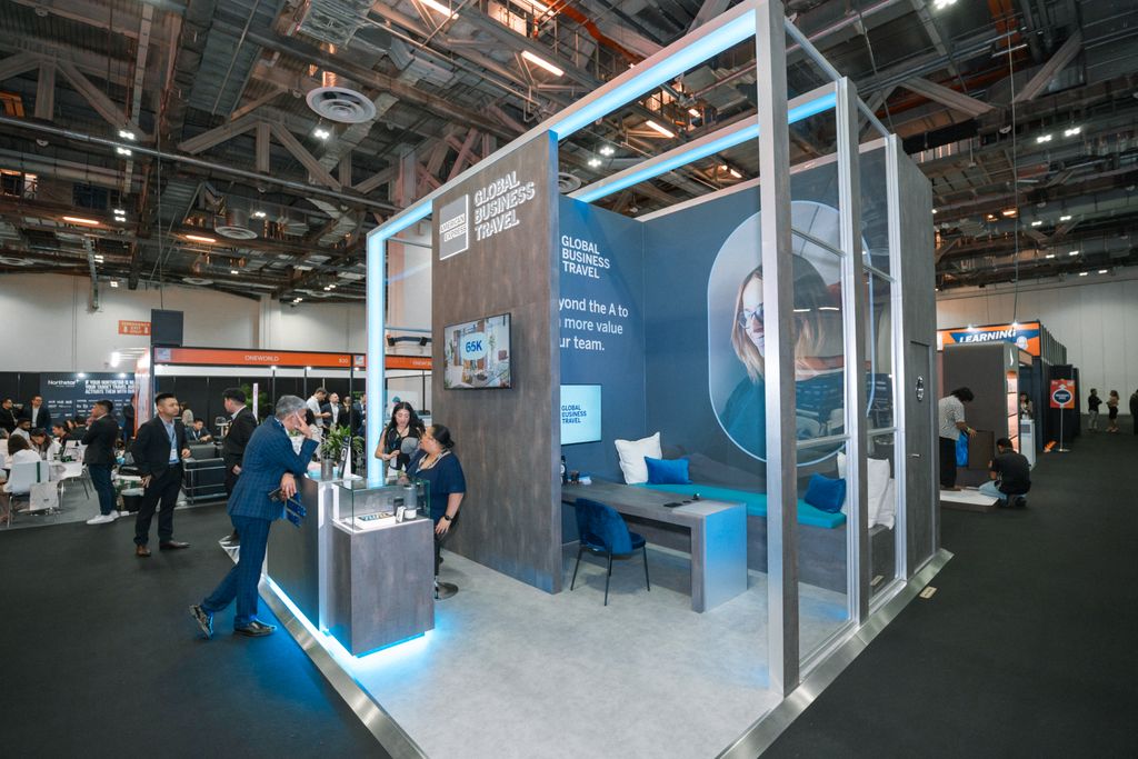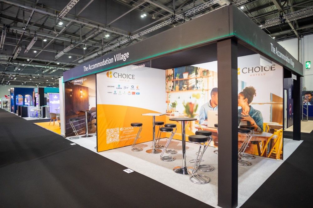 Spaces in our Accommodation Village and Airline Pavilion include name board, access to shared storage area, lighting, shared power, one high table, three stools, grey cord carpeting and your logo or artwork on the back wall (1mx1.4m high)